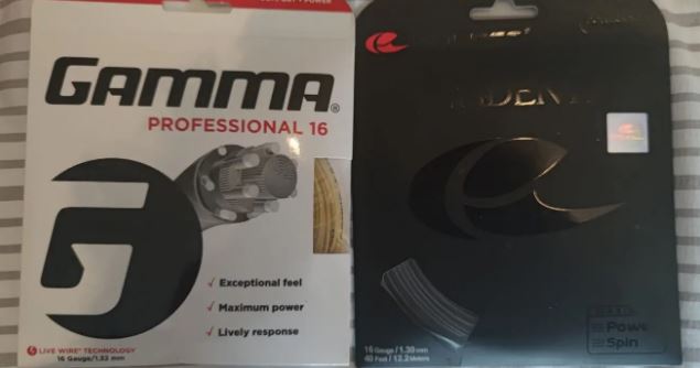 아래의 스트링제품 사진에서 감마 프로페셔널과 솔린코 기밀이 모두 16 게이지인 것을 알 수 있지만 밀리미터 단위의 두께는 1.32mm와 1.30mm이라는 것을 확인하셔야 합니다.